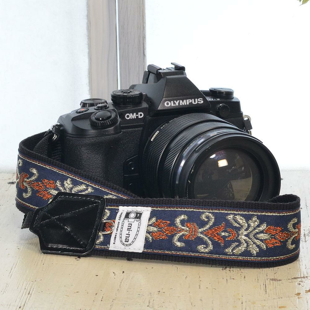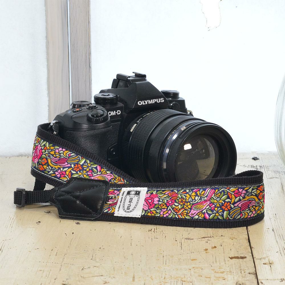 カメラストラップ 【3.5cm幅フリータイプ】 /花刺繍ストライプ