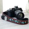 リボンに可愛い刺繍が施されているチロリアンテープのカメラストラップです。 純正のストラップより少し長めなので斜めがけにできるのも魅力です。 (身長165cm位の方まで斜めがけOK)