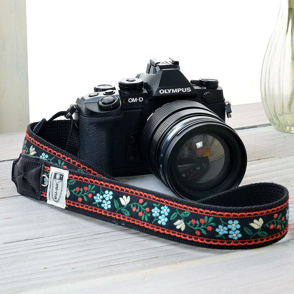 以前からチロリアンテープのストラップが欲しかったので、写真で一目惚れして購入しました。実物を見ないで買うのに少し抵抗があったのですが、刺繍が綺麗でとても気に入りました。ミラーレスカメラ用にと思っていましたが、しっかりしているので手持ちの一眼レフでもいけそうです。色違いでもう一本欲しいなと思いました。