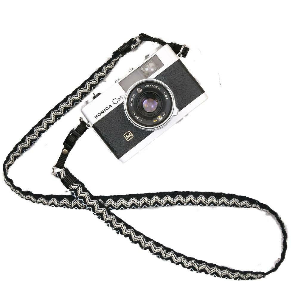 ミラーレス一眼カメラなどの小型のカメラやコンパクトフイルムカメラとも相性が良い、おしゃれなカメラストラップです。