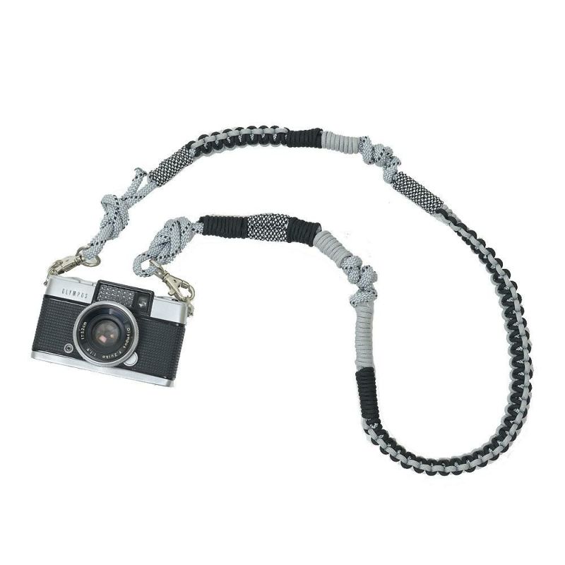 アウトドアロープの編み込みカメラストラップ/ブラックモノトーン