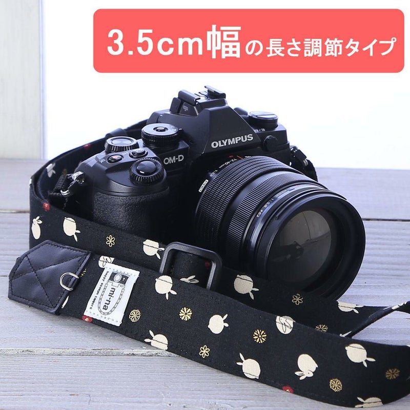 カメラストラップ 【3.5cm幅フリータイプ】 /夢うさぎ 漆黒