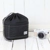 紐をキュッと結ぶと、ころんとかわいい巾着のインナーケースになります。外側には6個のポケットがあり小物を入れておくのに便利です。そして巾着タイプですが、カメラをすぐに取り出したい方は、上部を外側に折り返してバッグにセットして頂くとスムーズに取り出し可能です。表地と中の生地がバイカラーになってオトメゴコロをくすぐるデザインに仕上げました。お手持ちのバッグにこのインナーケースを入れれば安心してカメラを持ち運べます♪