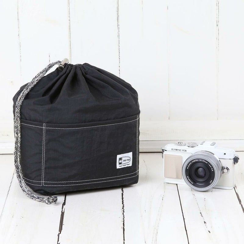 カメラをお気に入りのデイリーバッグに入れたいけど直接ポンと入れるのはなんとなく不安だし、バッグの中でいつもカメラを探してしまうのでもっと整理して入れたい…そんなお客様の声に応えてデザインしたのが“巾着インナーケース”です。ポケットもたくさん付いたソフト仕上げのエアリ―感で色々なバッグの形状にフィットしやすい仕様になっています。