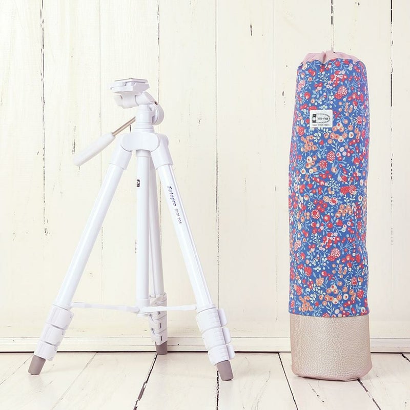 巷では、小さめコンパクトな三脚から本格的になるとかなり重くて大きいモノまであり、色々検討した結果、女性に取り扱いやすいサイズと重さでかつ全高は120cmはあるものを選びたいという条件で三脚を厳選し、かわいくデザインしたミーナオリジナルケースとセットでご紹介させて頂くことになりました。