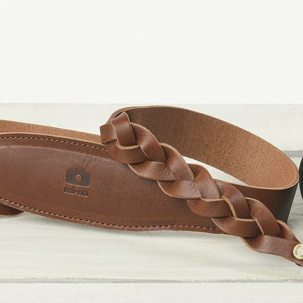 三つ編みレザーのカメラストラップ チョコ