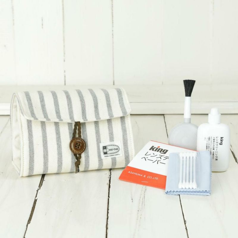 お気に入りのカメラを長く使うためには普段からのお手入れが大切になってきますよね。レンズのほこりを吹き飛ばしてくれたり、液晶の汚れを簡単に拭き取ってくれたり。そんな便利なクリーニンググッズを1つにまとめてかわいいポーチにセットしたミーナオリジナルのメンテナンスキットをお届け☆