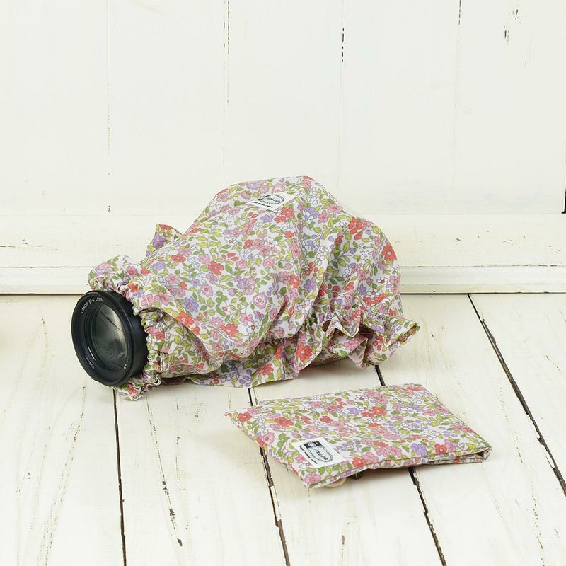 大切な愛するカメラにかわいいレインコートを着せてみませんか。急な雨、子どもとの水遊び、海やキャンプで…などなど水のあるシーンでのシャッターチャンスではカメラにタオルを巻いてしのいだなんていう経験意外と多いのではないでしょうか。巷では高価なレインカバーも販売されていますがカメラ女子さんにはちょっとなんか味気なくて寂しい気持ちになったりもして…そこでちょっとした水滴や水しぶき除け用にかわいいタイプをデザインしてみました。カメラのレインコートを着せたままシャッターを押すことも可能です♪