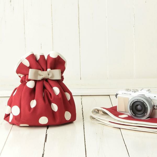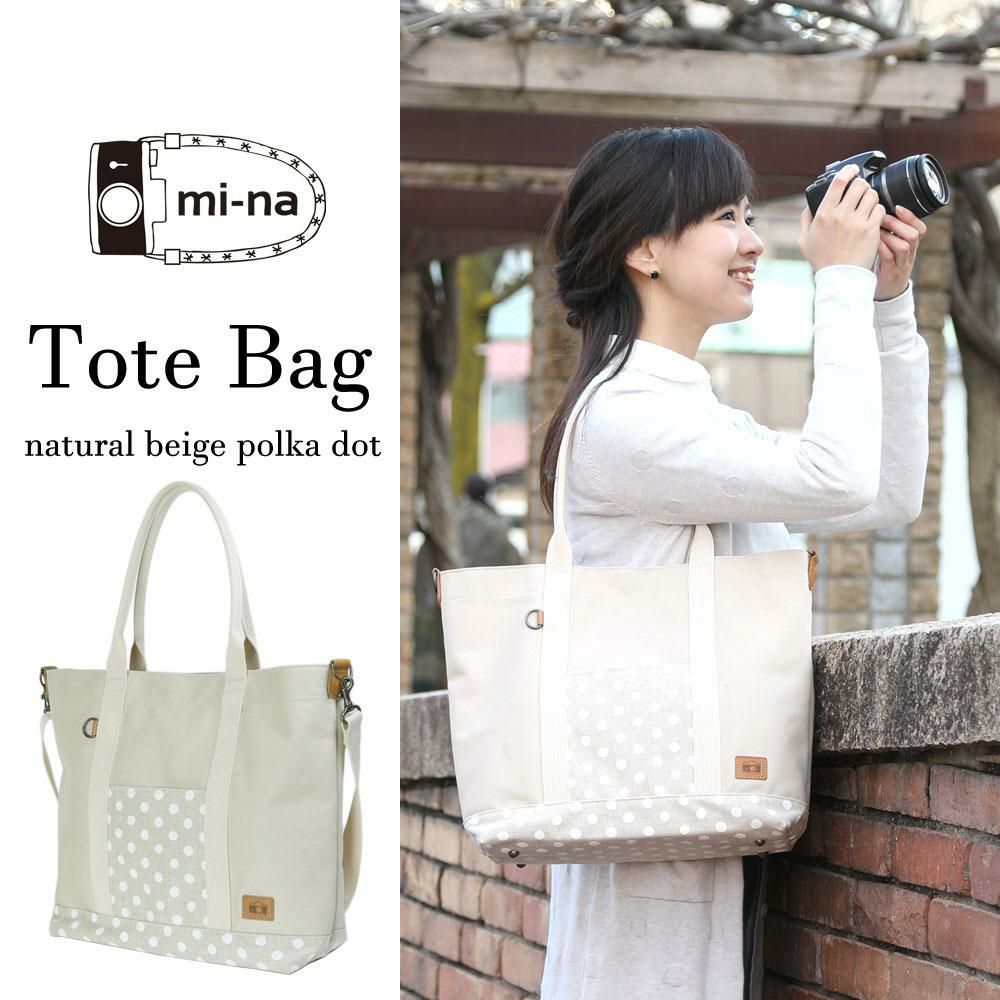 ショルダーベルト付きカメラトートバッグ/ ナチュラルベージュポルカドット