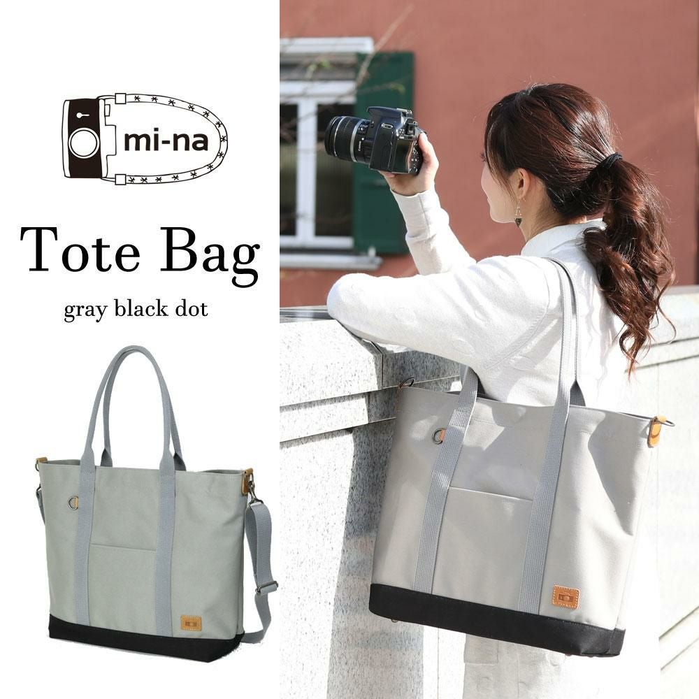 ショルダーベルト付きカメラトートバッグ/ グレーブラックドット
