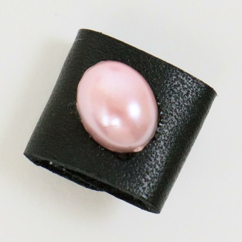 【同梱専用】カメラピアス ピンクパール 黒レザー