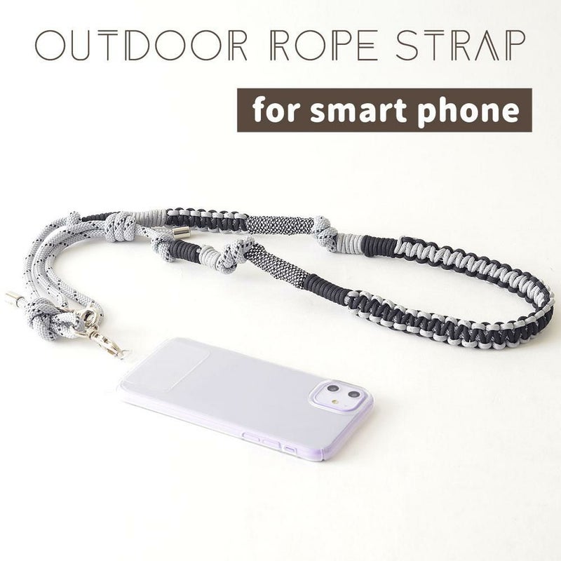 アウトドアロープ編み込みスマホショルダー ブラックモノトーン