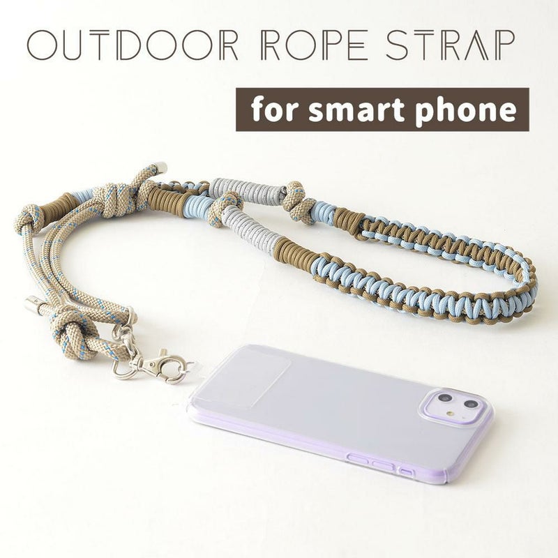 アウトドアロープ編み込みスマホショルダー ブラウンブルー