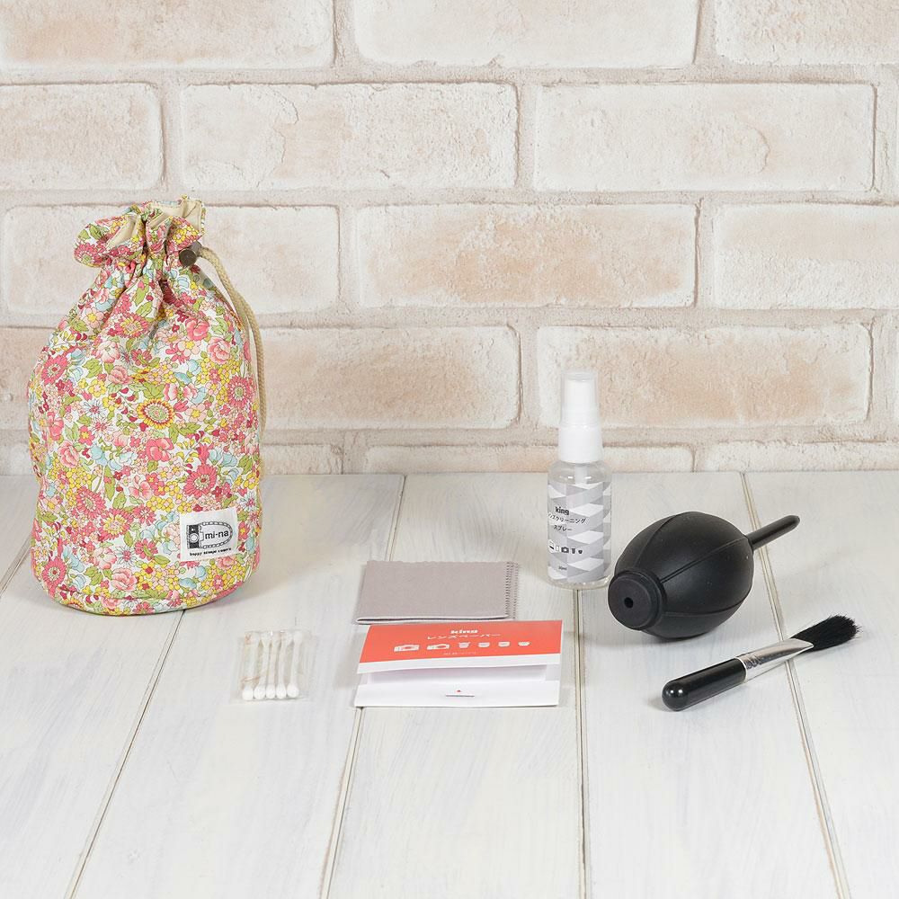 お気に入りのカメラを長く使うためには普段からのお手入れが大切になってきますよね。レンズのほこりを吹き飛ばしてくれたり、液晶の汚れを簡単に拭き取ってくれたり。そんな便利なクリーニンググッズを1つにまとめてかわいいポーチにセットしたミーナオリジナルのメンテナンスキットをお届け☆