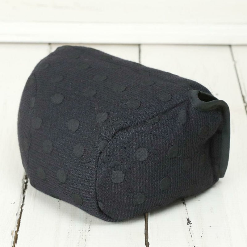 お出かけのコーディネートを選ばないシンプルシリーズの登場です♪表地は、ポリエステル素材で、ぷっくり、ふ~っくらと織り上げられたジャガード織のブラックドット柄がエレガントな生地をチョイス。立体感のある、織の風合いは、シックでかわいくて品の良いレディな雰囲気にピッタリ。裏地は表地の雰囲気に合わせて、シャンタンのほどよい光沢感がさり気なくオシャレなレーヨンの生地をチョイス。あえてブラックから少しずらしたチャコールグレーが品の良さをUP。エレガンスな装いからほっこりとしたカジュアルな装いまでどんなコーディネートにも合わせやすいので使いやすく1つあると、あなたのカメラLIFEに彩りを添えてくれること間違いなし!何気ない出来事をキリトリにあなたのカメラを準備してこのケースと一緒にhappy osanpo camera♪しませんか☆