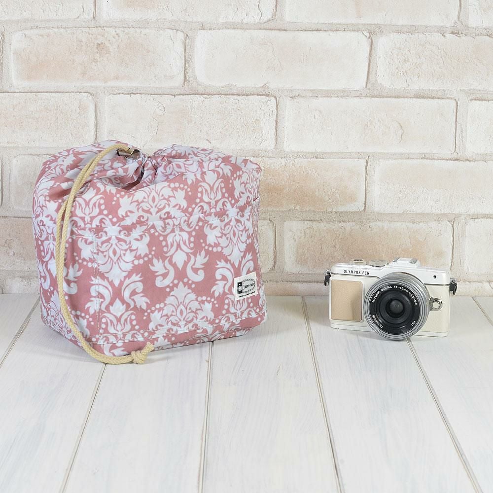 ふわふわソフトタイプ カメラ用 12ポケットインナーバッグ Мサイズ/ ダマスクピンク