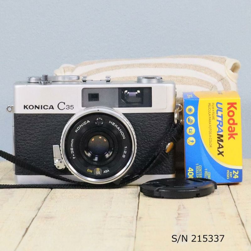 KONICA C35は1968年(50年以上前!!)にコニカというメーカーから発売されたフィルムカメラです。