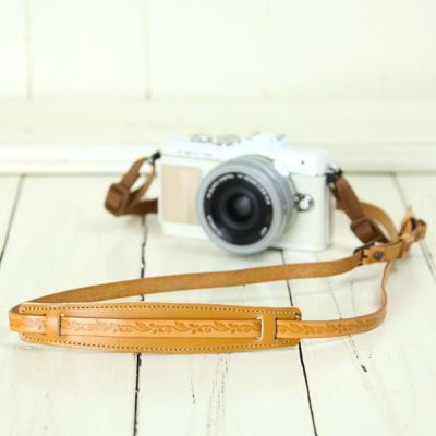 レザーのストラップを探していたところナチュラルなかわいいものを見つけました! 肩あてもついていて付け心地よいです。 金具がちょっと小さく壊れないか不安ですが大切に使います。