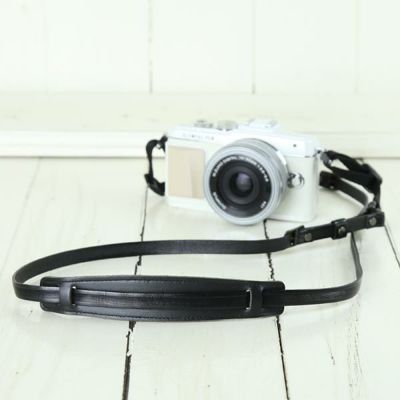 イタリアンレザーのカメラストラップ/ストライプブラック