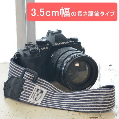 レンズを新しく購入してカメラが重くなったので、3.5cm幅のストラップを購入しました。 予想よりかなりしっかりした作りで、肩にも食い込まず大満足です♪ 何色の服にも合わせやすい柄なので、これからのおしゃれがとても楽しみです!