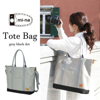 ショルダーベルト付きカメラトートバッグ/ グレーブラックドットのレビュー