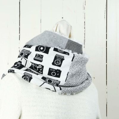 ミーナオリジナル★巻き方でフェイスが変わる♪あったかパッチワーク スヌード ホワイト