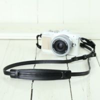 パナソニック LUMIX GX-1用に妻に頼まれ購入しました。とてもかわいいです。純正品から変わり妻も大喜びです。男性の私が下げても長さ的には問題ありません。