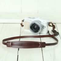 イタリアンレザーのカメラストラップ / ストライプブラウン