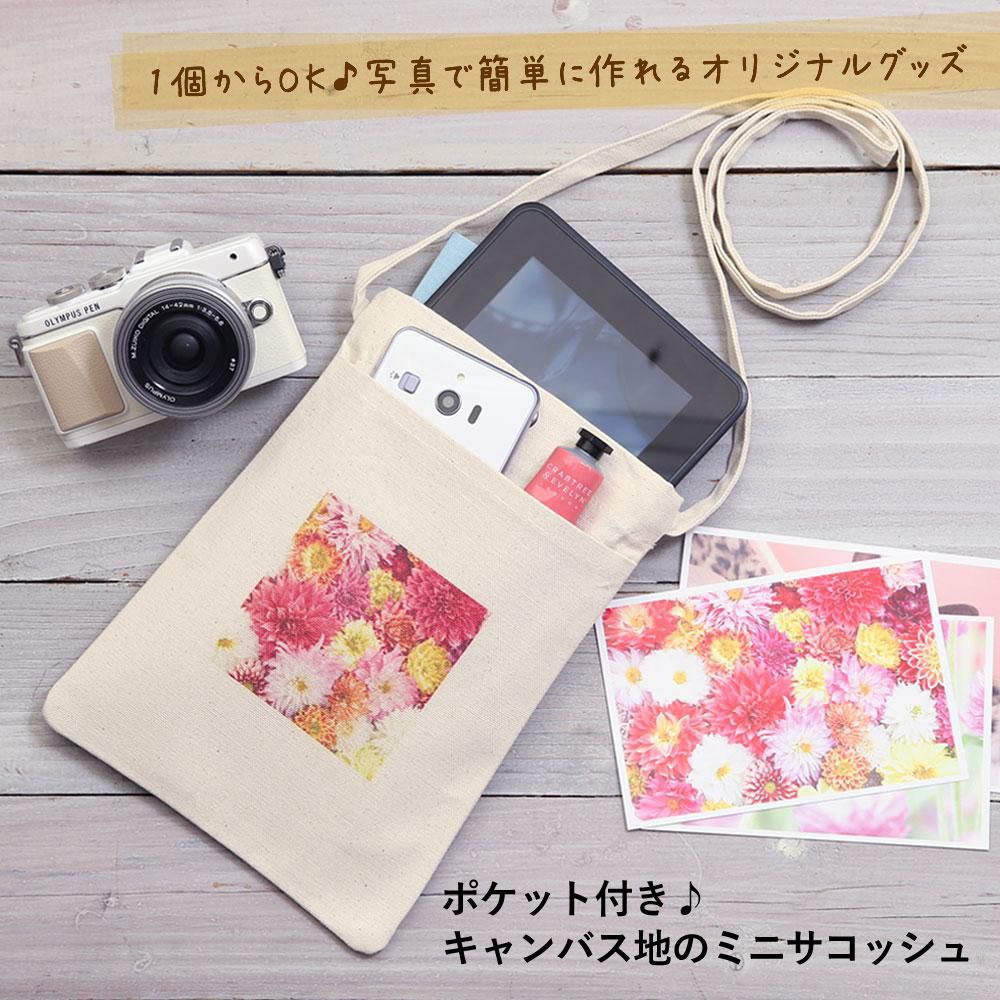 【写真入オーダー】【2月上旬納期】ポケット付き♪キャンバス地のミニサコッシュ