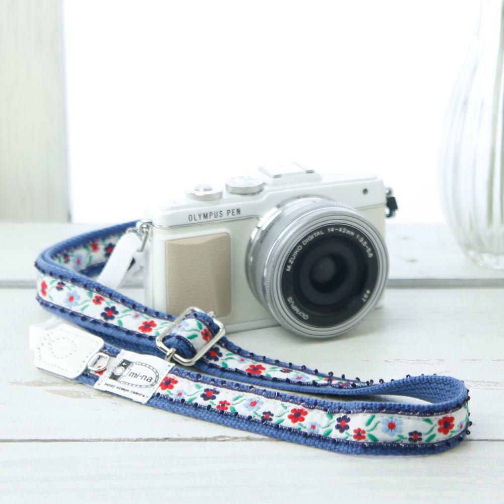 カメラストラップ 【3.5cm幅フリータイプ】 /フラワーガーデンブルー