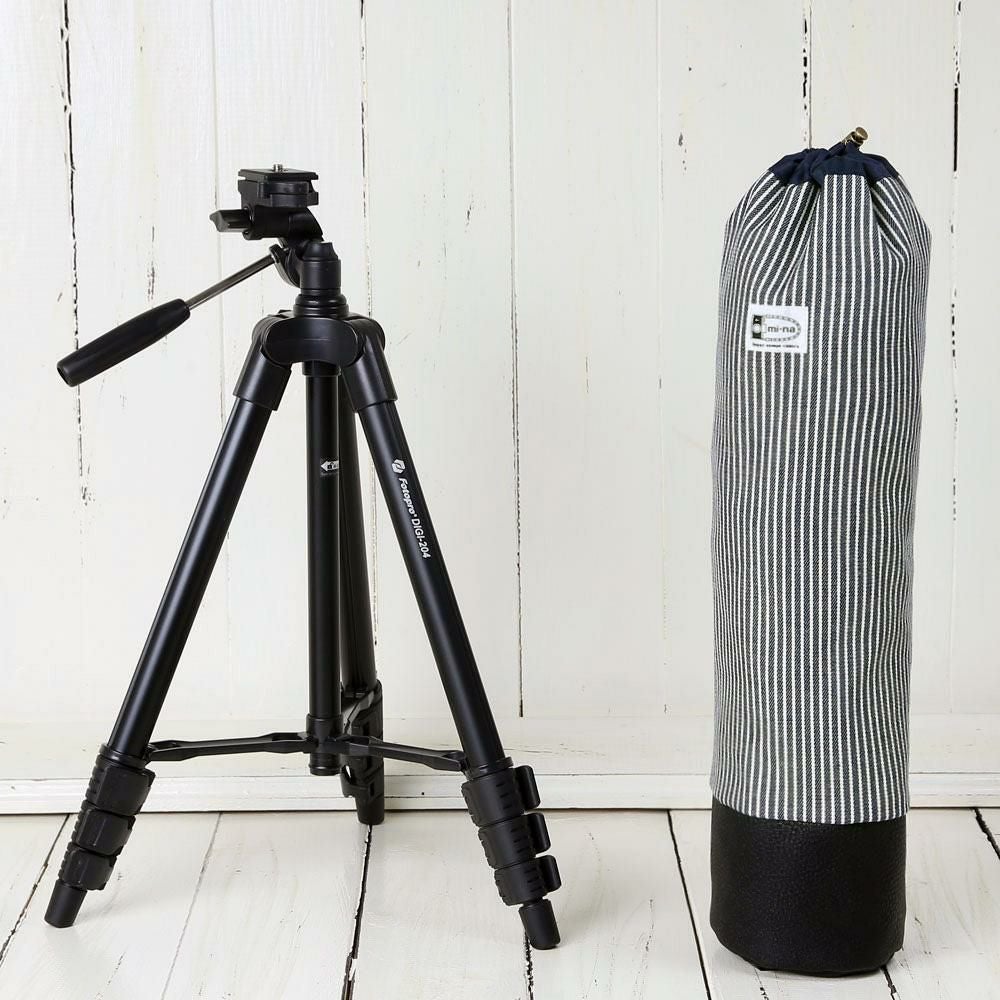 かわいいケースとコンパクト三脚(ブラック)の2点セット/ ベージュストライプ