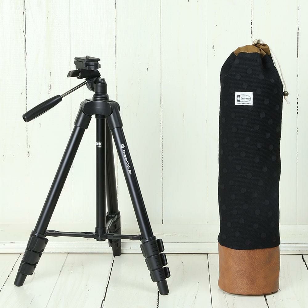 かわいいケースとコンパクト三脚(ブラック)の2点セット/ エレガントブラックレディードット